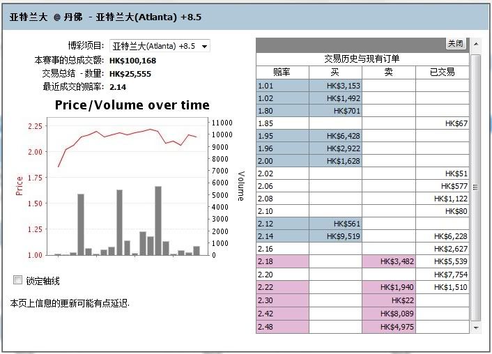标盘:早段主队已经有买单介入,而且客队无人问津;后段,主队有小量卖单,可见庄家要放掉手头的受注,而客队这个时候恰恰有买单介入,且力度不少,可见其下半发力